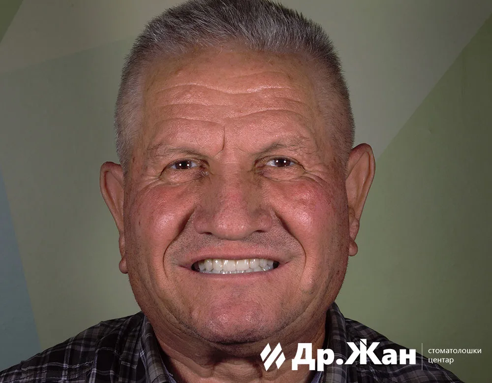 По 6 месеци заздравување, му обезбедивме на пациентот нова прекрасна и функционална насмевка. Користевме хибридни циркониумски заби на титаниумска шипка за долгорочно естетско и трајно решение. Г-дин Џорџ сега може повторно да се насмевнува и да јаде со леснотија.