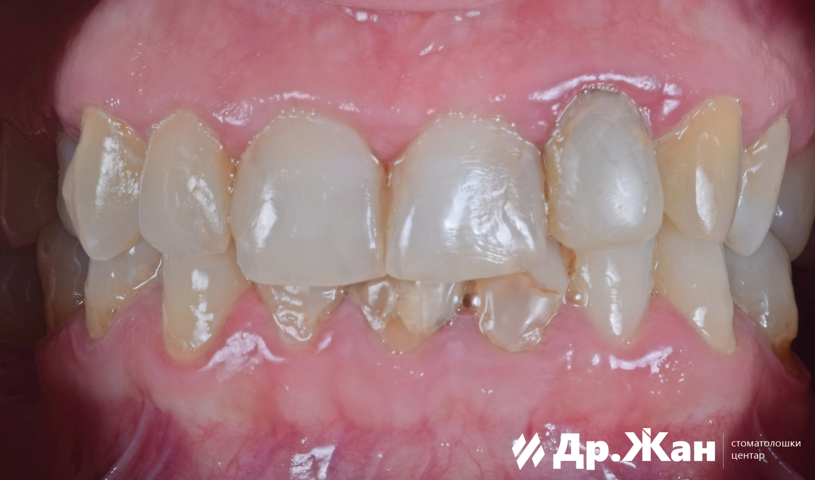 Пациентката дојде во нашата ординација барајќи начин да ја подобри својата насмевка и да ја зголеми самодовербата. Не ѝ се допадна идејата да носи протези и сакаше побрзо решение.